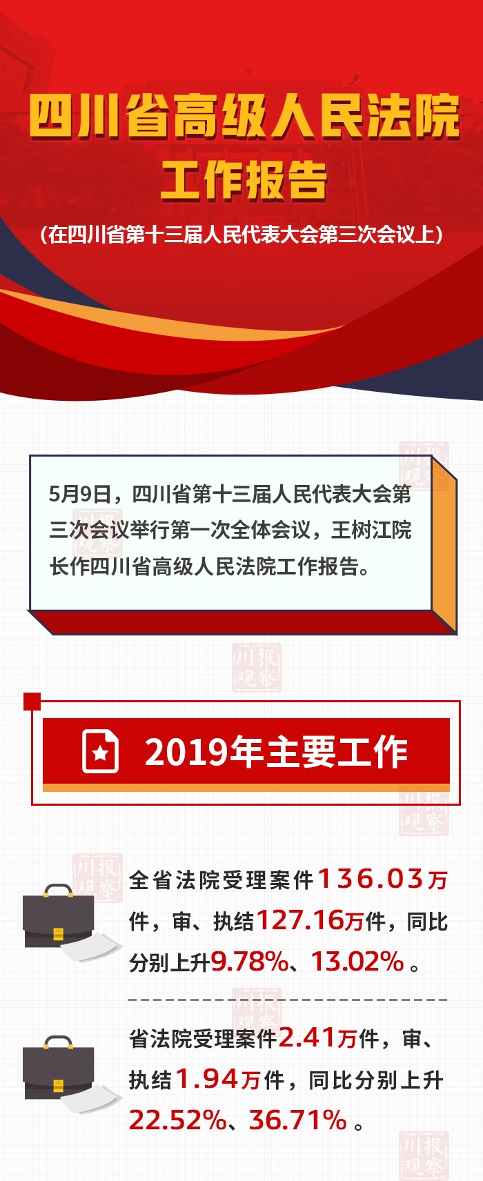 5月9日,四川省第十三届人民代表大会第三次会议在成都开幕。会议议程之一,就是听取《四川省高级人民法院工作报告》。