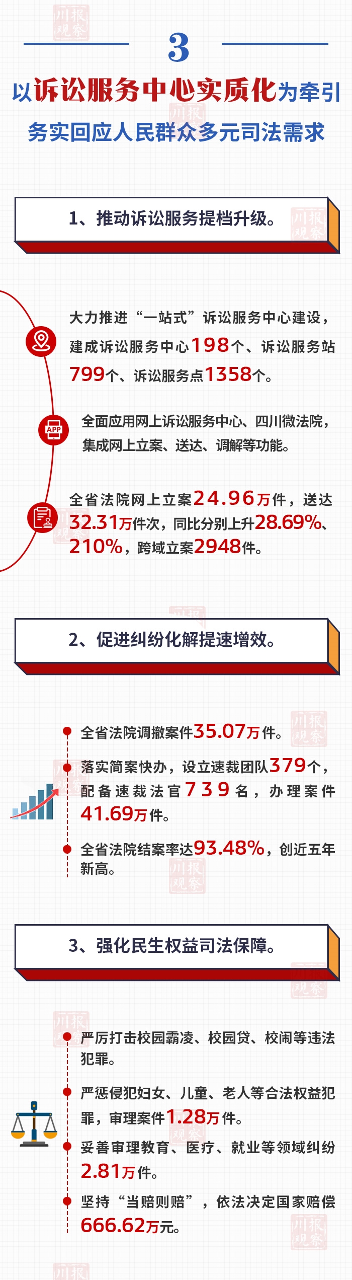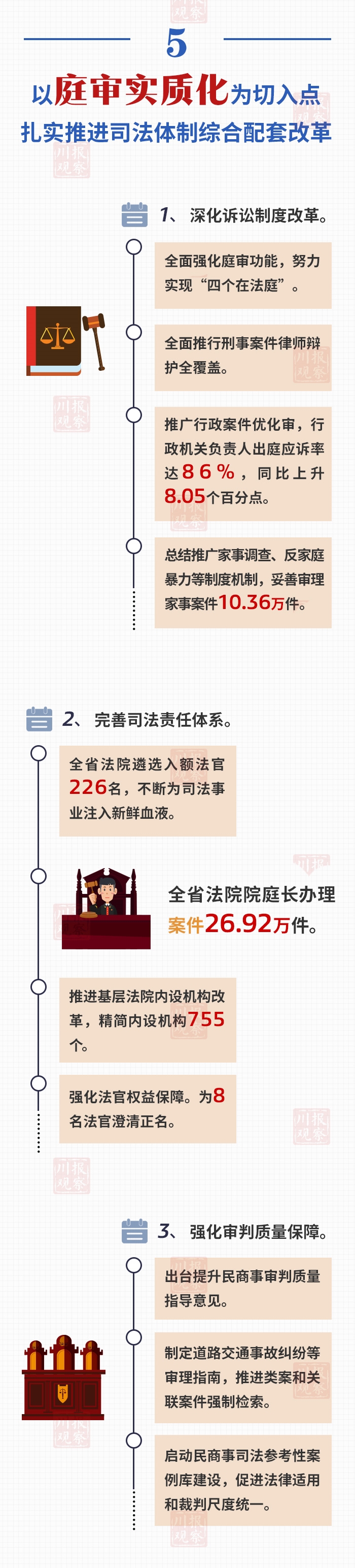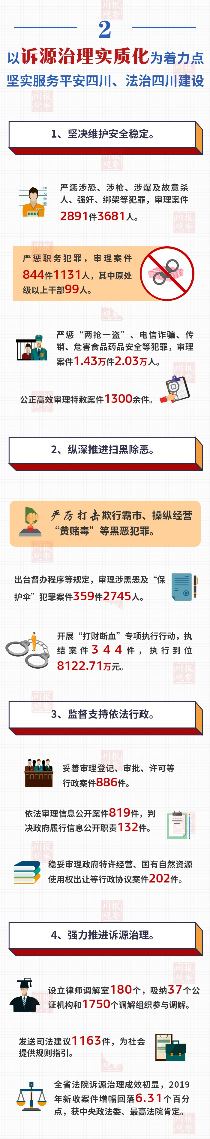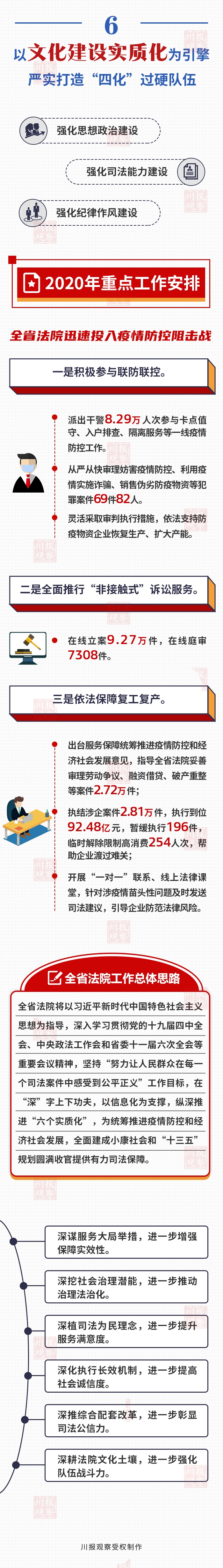 与往年不一样的是,为让全社会更加广泛了解法院工作,今年四川省高级人民法院授权川报观察制作《四川省高级人民法院工作报告》”200秒动画+一图读懂“。参会的代表委员,只要使用微信上的扫一扫功能,扫描《四川省高级人民法院工作报告》右上角的二维码,就可在手机上查看与法院工作报告有关的动画视频和图解。