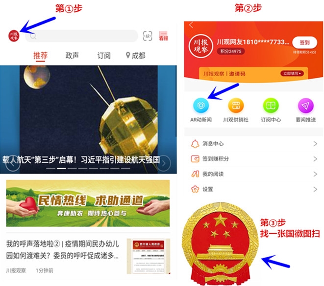 此外,川报观察还特别推出“实景AR扫描读报告”功能(AR扫描说明图在文末),社会公众只需下载川报观察客户端,使用其中的“AR动新闻”功能,扫描你身边的国徽图案,便可用更具科技感的方式浏览法院工作报告,完整了解去年四川法院的工作成效和今年的工作打算啦!