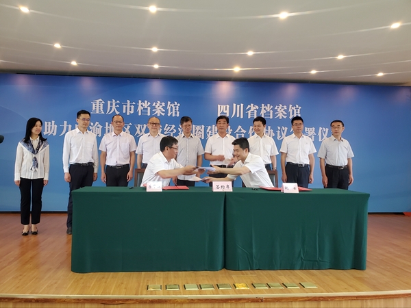 5月9日,四川省档案馆与重庆市档案馆在成都签署《助力成渝地区双城经济圈建设合作协议》,双方将围绕档案资政、利用服务、资源开发等七个方面开展深入合作,为成渝地区双城经济圈建设贡献档案力量。
