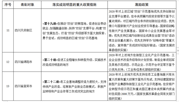 四川全省共获16项奖励支持措施,其中,省本级4项,成都市2项,绵阳市3项,宜宾市、泸州市、天府新区、金牛区、青羊区、蒲江县、丹棱县各1项。