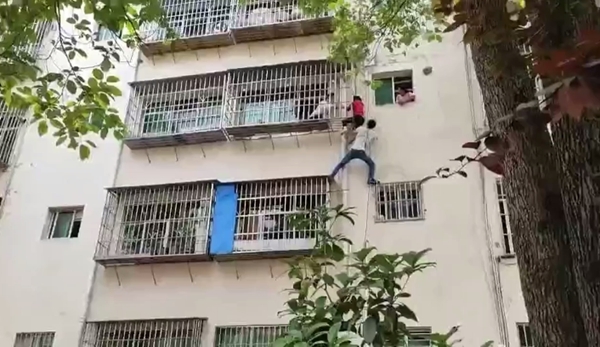近日,巴中市恩阳区渔溪中学宿舍楼4楼的防护栏外,一名9岁儿童已被困在防护栏上。由于天气炎热、孩子紧张,加之体力不支,他多次向前来救援的民警呼叫,情况异常紧急。