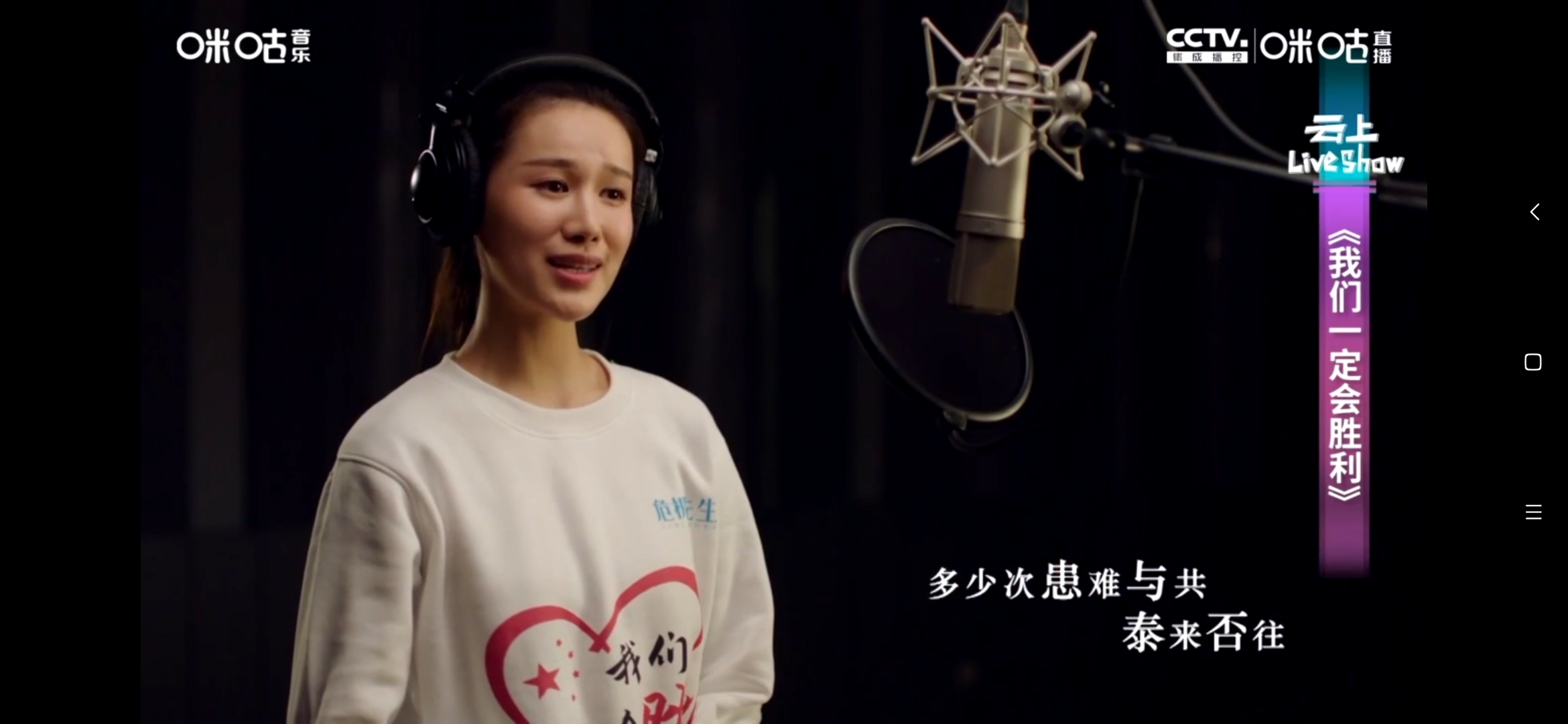 比如第一篇章的歌曲《跟我上》还有《逆行者》,都是表达对面对疫情奋不顾身冲锋在前的抗疫英雄的致敬。第二篇章《白衣天使的心声》描写一线医护工作者面对疫情时的内心独白,体现了在这场全民战“疫”的特殊时期,不同行业人群的责任担当和对奋战在一线的医务工作者的崇高敬意。第三篇章《我们一定会胜利》《我相信》这些歌的基调是积极的,为抗疫加油打气,鼓舞人心,相信疫情可以早日彻底结束。