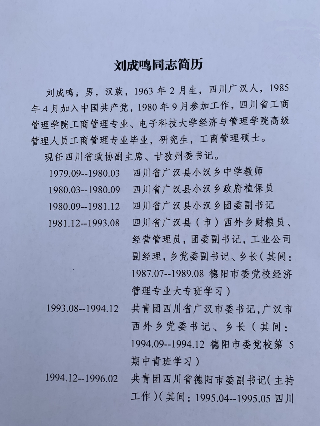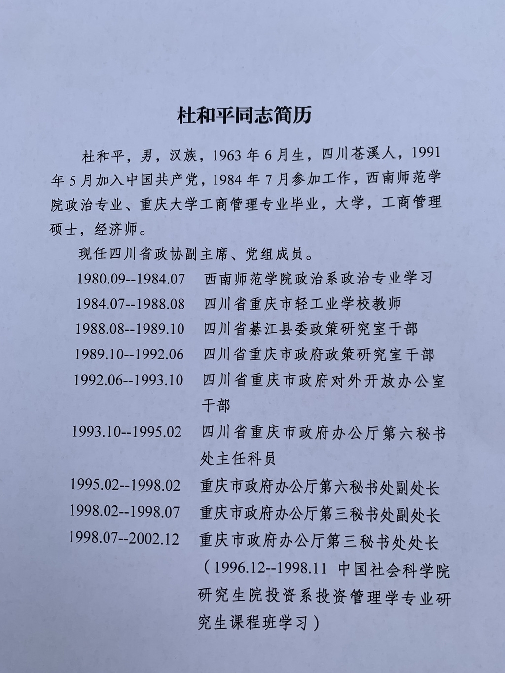 杜和平、刘成鸣当选为四川省政协副主席(照片、简历)
