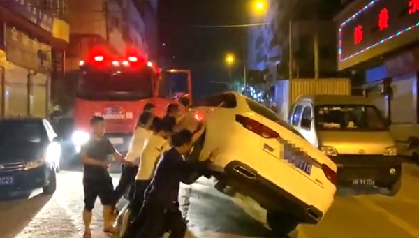 当消防车行驶至蜀园街,道路两侧停放多辆私家车,个别车辆甚至直接停在路中间,消防车辆根本无法通行,听到警报声围观而来的市民见有私家车完全挡住了道路,就自发组织将该车掀到路边,清理出通道保障消防车辆通行,万幸的是,此次火灾没有酿成大祸。