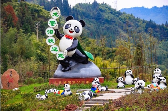 四川在线消息(记者 寇敏芳)从成都出发,沿京昆高速一路向南,约2.5小时后,位于雅安市荥经县的龙苍沟出口出现在眼前。从这里下高速,仿佛进入了大熊猫的乐园——沿途的小路上栽满翠竹,大熊猫雕塑游憩竹林间……