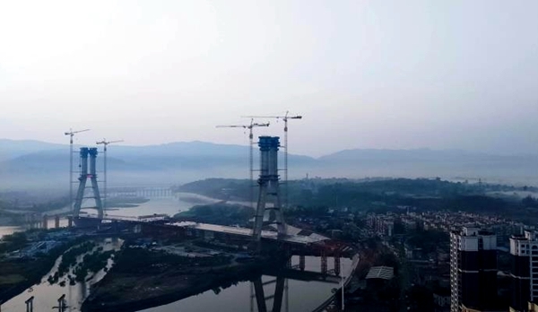 据了解,该项目预计今年下半年可实现钢箱梁合龙,完成斜拉索施工,明年上半年项目完工通车。韩滩双岛大桥是成都市跨度最大的钢箱梁斜拉桥,通过斜拉索斜挂东西岸主塔把钢箱梁整体悬吊起来,建成后将成为金堂县地标性桥梁。