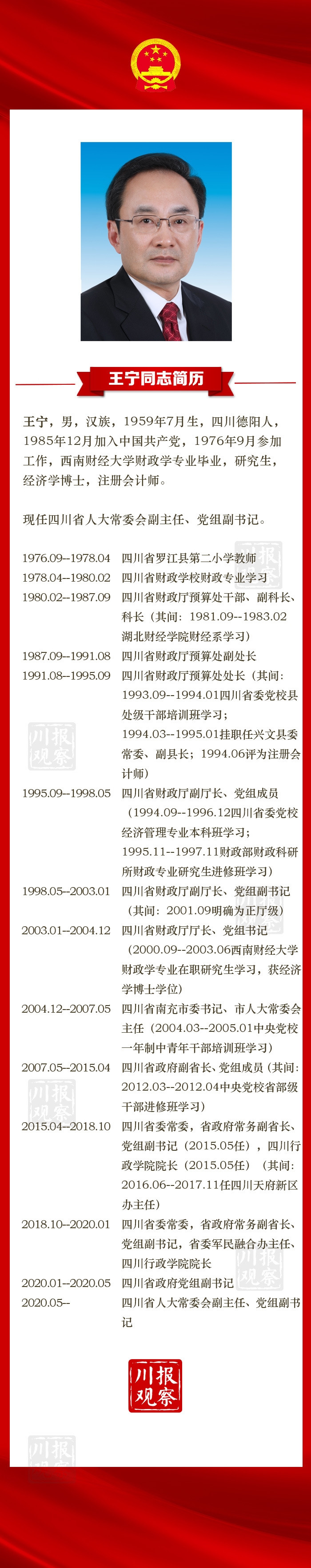 王宁当选为四川省人大常委会副主任(照片、简历)