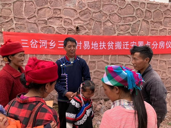 吉好也求已于2019年2月搬迁到三河村1号安置点。当天,作为邻居,他来到洛达社的安置点,为搬迁村民宣传环境卫生知识、传递感恩之情,激发大家的奋进之心。吉好也求的新家,与洛达社安置点直线距离仅三四百米。