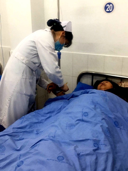4月25日,一位身材魁梧的精神病患者入院后,躁狂症发作,王飞燕和同事想方设法将患者约束在床上。此时,患者对着王飞燕和同事猛吐口水、乱咬人,在四五个男同事的合力下才成功将患者约束住。