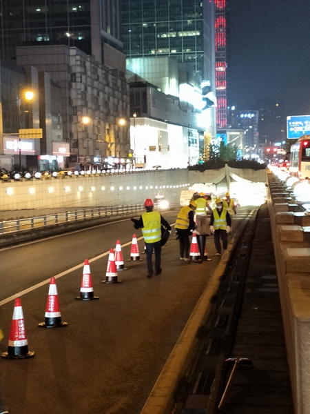 “报告!人民塘路下穿隧道顶部民兴路路面严重积水,路灯灯杆倾伏、井盖缺失破损……对车辆和行人造成危险!”接到指令后,成都市城管执法总队、市道桥监管中心、市照明监管中心、市井盖办等部门迅速调集抢险队伍、机械设备以及应急物资火速奔赴成华区人民塘路下穿隧道顶部民兴路。