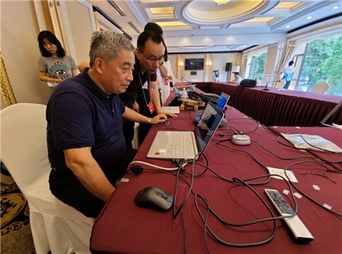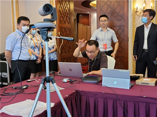 5月12日上午11时,经过努力,迎来参会倒计时的调试工作,终于实现了与香港、澳门的连线、互通。现场正在紧张调试的几位工作人员松驰了下来。