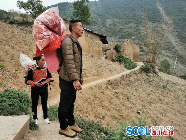 5月13日清晨6点,“悬崖村”贫困户某色达体就早早起床,收拾行李,准备出发。