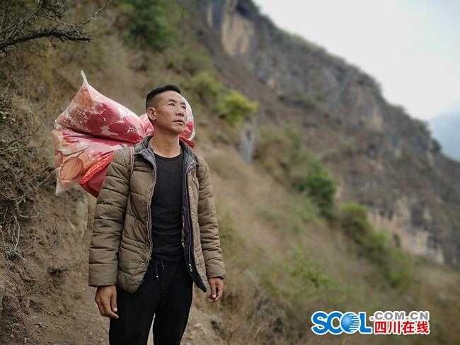 俄的根哈昨天提前进县城搬九件套到了新房,今天凌晨三点才回到悬崖村,脚已经走肿了的俄的根哈睡了两小时又起床,一家人准备下山了。
