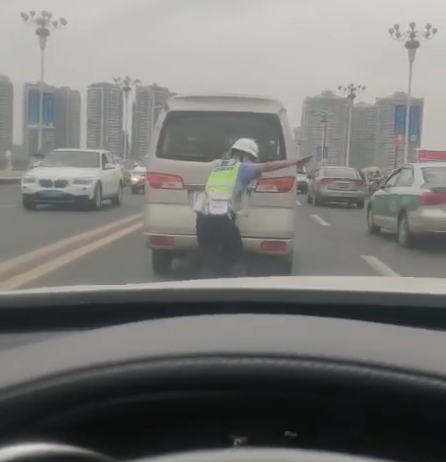 “巡逻时看到面包车不能行驶,一方面影响车主自身安全和道路交通安全,另一方面造成拥堵,影响通行效率,于是就把车子推到了路边安全处等待救援。”王强说。