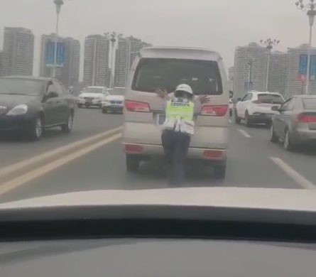 王强徒手推车的过程被路过的群众记录下来,视频中,他一边奋力推着面包车,一边打着手势让后面的车辆注意避让,许多网友称赞这是“最美背影”。