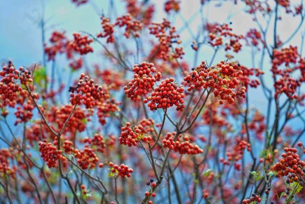 5月,昭觉县支尔莫乡阿土列尔村(“悬崖村”)里唯一一棵“哈尔古”(彝语,一种野果树)的果子成熟了。红红黄黄的小浆果,蓝莓般大小,一簇簇挂在枝头。摘下一颗,含在嘴里,有点酸有点甜,果肉很少,味道很长。