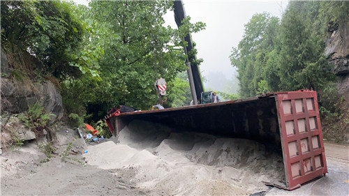 5月14日凌晨3时许,达州市达川区九岭镇墩子河路段一辆满载泥沙的大货车发生侧翻事故,有人员被困。达州市消防救援支队指挥中心接到群众报警后,立即调度金龙大道特勤站出动1辆抢险救援车6名指战员赶赴现场救援。随后,经过消防指战员2小时不懈努力2名被困者被成功救出。