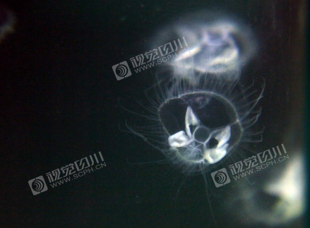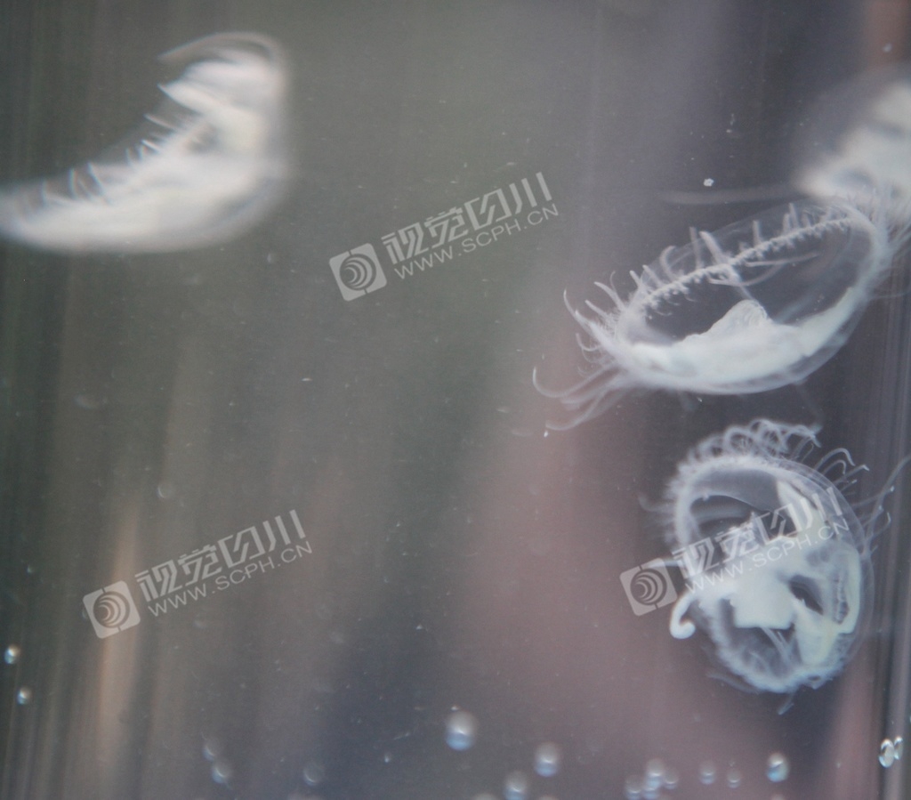 近日,在内江市东兴区平坦镇姜家村蛟龙湖乡村观光农业园的水库中发现成千上万只体态晶莹、姿态优美、宛若桃花的罕见生物。