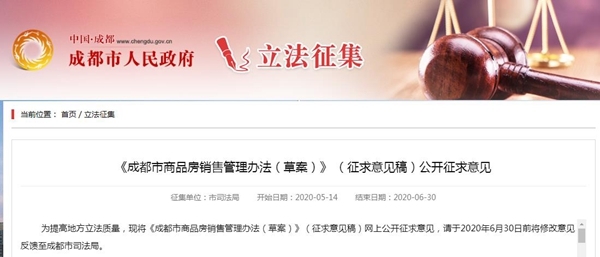四川在线消息(记者 文强)5月14日,成都市人民政府网站公布的《成都市商品房销售管理办法(草案)》(征求意见稿)即日起至6月30日公开征集意见。该文件显示,商品房并联竣工验收合格证作为商品房首次登记要件之一,实行商品房交付使用同时交不动产权证制度。