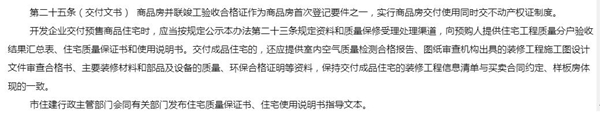 第二十五条(交付文书)商品房并联竣工验收合格证作为商品房首次登记要件之一,实行商品房交付使用同时交不动产权证制度。