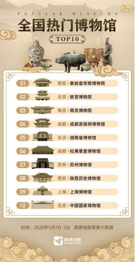 高德地图相关负责人表示,这份最新出炉的博物馆榜单是基于新冠肺炎疫情防控进入新阶段后首个“五一”小长假的高德出行大数据分析得来的。数据显示,北京、西安、南京、成都等城市,均是文化之旅的热门打卡地。