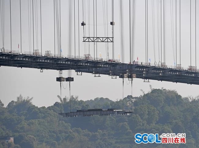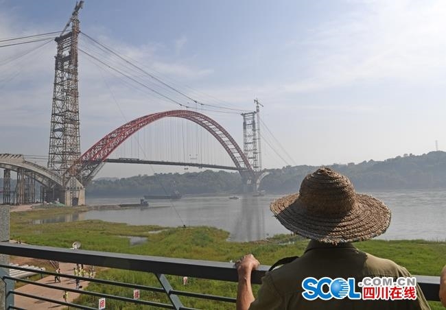 四川在线消息(记者 王眉灵 摄影 肖雨杨)“桥要修好了!”5月18日上午,位于泸州市合江县县城的合江长江公路大桥主梁合龙,合江县滨江路上挤满了看热闹的群众。合江是一座临长江的水滨城市,但这样一垮过江的桥并不多,也因此吸引了多人围观。