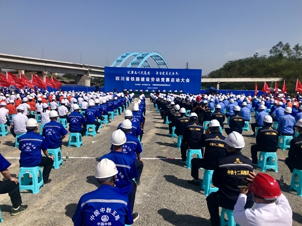 四川在线消息(记者 王眉灵)5月18日,由四川省总工会和中国铁路成都局集团公司联合举办的“筑梦出川大通道,争当发展火车头”铁路建设劳动竞赛,在成都至自贡高速铁路项目成自泸高速立交双线特大桥建设现场正式启动。这是四川铁路建设参与单位最多、覆盖行业最广、形式最丰富的一次劳动竞赛。