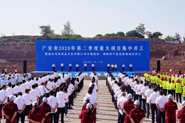 仔细梳理此次广安市集中开工项目,来自成渝地区双城经济圈的项目颇为抢眼。当天,总投资7亿元的重庆火锅底料龙头企业毛哥食品开发有限公司火锅底料、调味料产业化基地项目在武胜火锅产业园开工,这是广安市最大的火锅底料生产项目,拉开了重庆火锅底料产业向广安转移的序幕。