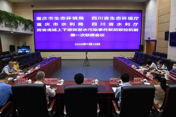 为推动成渝地区双城经济圈建设,进一步增强上下游突发水污染事件联防联控合力,共同维护长江上游水环境安全,5月18日,重庆市生态环境局、四川省生态环境厅、重庆市水利局、四川省水利厅召开跨省流域上下游突发水污染事件联防联控机制第一次联席会议,并签订了《跨省流域上下游突发水污染事件联防联控机制》。