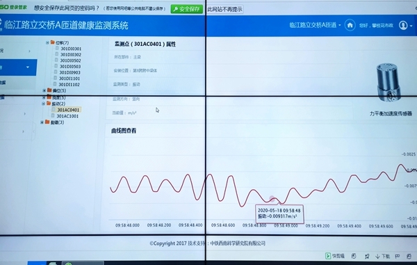 “看,监控显示刚刚一辆货车经过这个监测点,很直观地看到振动数据产生波动。” 攀枝花市市政公用设施服务中心办公室主任伍国丰点开大屏上“监测指标统计”板块,一段波状图再现了监控视频拍下的情景。“以前靠人工监测,现在传感器接收,效率更高、更准确。”桥梁的位移、挠度、偏位、振动、撞击、裂缝等指标变化,都是通过安装在桥墩顶部和桥面底部的传感器实时抓取。不仅如此,相关数据测量精度有所提升,“毫米级的裂缝也逃不过传感器的‘眼睛’。”