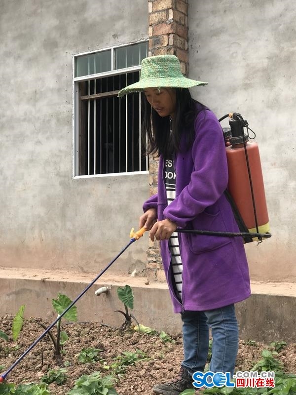 四川在线消息(秦琴 记者 余如波)5月的太阳异常火辣。在中江县普兴镇石龙店村,90后姑娘黄文洁背着农药桶,在庄稼地里来回穿梭,喷洒的动作十分娴熟。