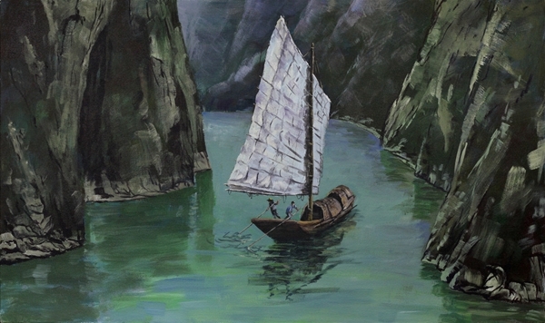 “楼道画廊我们筹备了近3个月”,李元婧说,14位乐山画师无偿作画,以“嘉州十七景”为主题,通过油画的鲜明色彩将金口河大峡谷、犍为小火车、黑竹沟马里冷旧、罗城古镇等自然与人文景观浓缩在一条走廊里。“其中有些画很有故事,比如刚刚提到的范传杰,他十年前从东北‘追爱’来到乐山,在这里定居十年,从他恢弘的构图里能感受到他对乐山这片土地不一样的爱。”