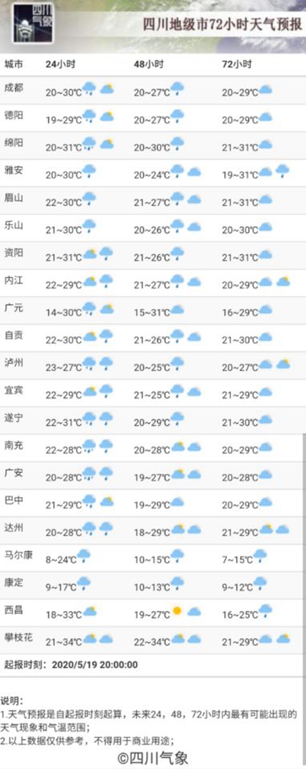 四川各地未来三天的天气预报是酱紫