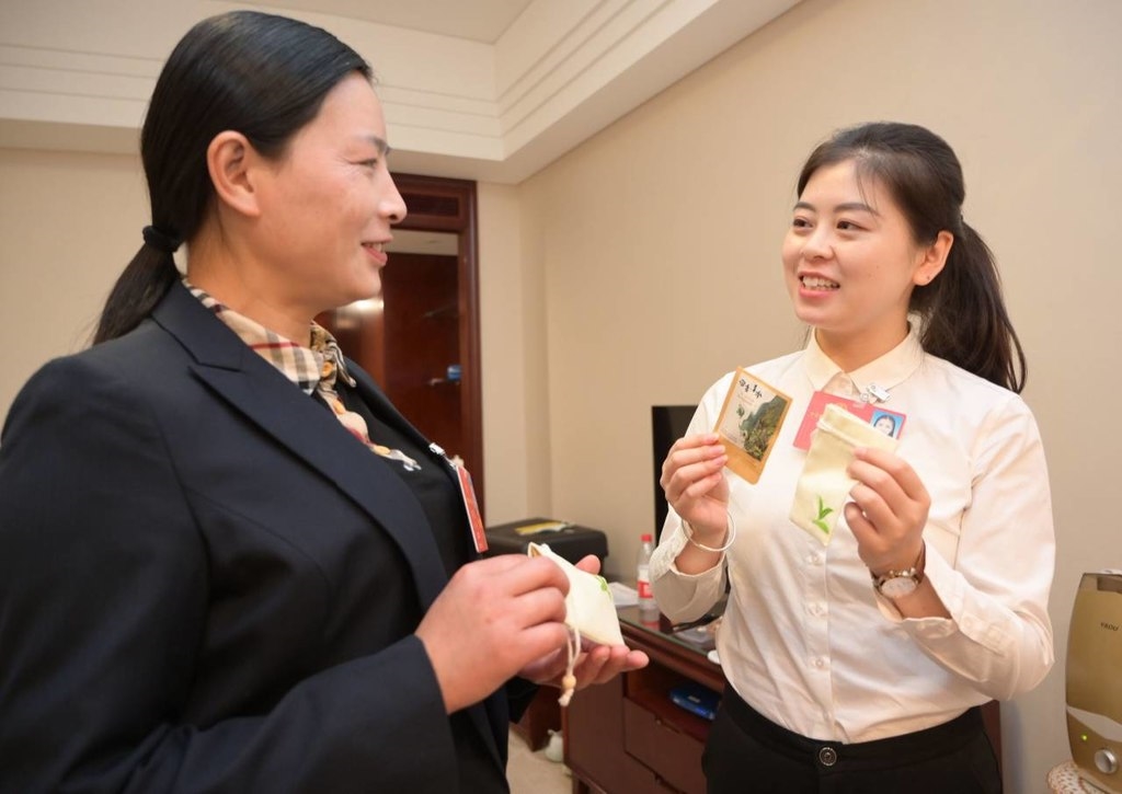 “同年10月,在习近平总书记的关心下,首批‘白叶一号’扶贫茶苗从浙江安吉,经过长途跋涉运送至青川县。”徐萍介绍,青川县素有种茶的传统,在浙江专家的帮助指导下,这两年,“白叶一号”在青川试种成功,今年试采了首批新茶,“虽然还没进入丰产期,但知道我要来北京参会,家乡父老托我一定要把这个好消息带到首都。”