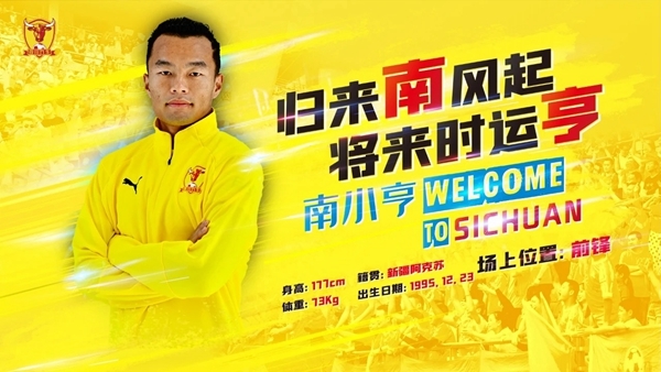 刚刚递补中甲成功的新军四川优必选继续着自己引进球员的步伐。5月27日,四川优必选官方宣布,从中超球队江苏苏宁引进前锋球员南小亨。