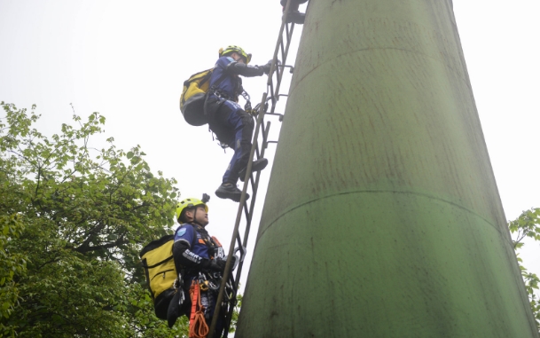 由于金顶索道地处高海拔地区,坡度大,海拔高,气候恶劣,索道下方地形复杂,有深沟,也有悬崖,峨眉山山岳救援队要在万变的环境中,稳定地利用绳索救援技术,灵活、安全、高效地完成突发救援任务。