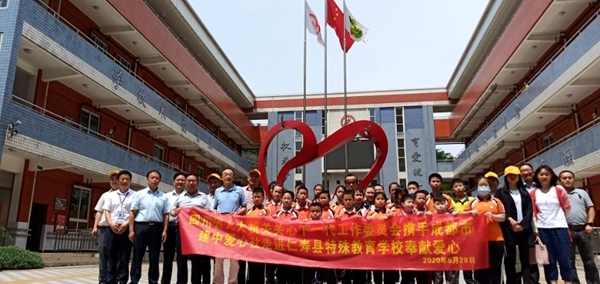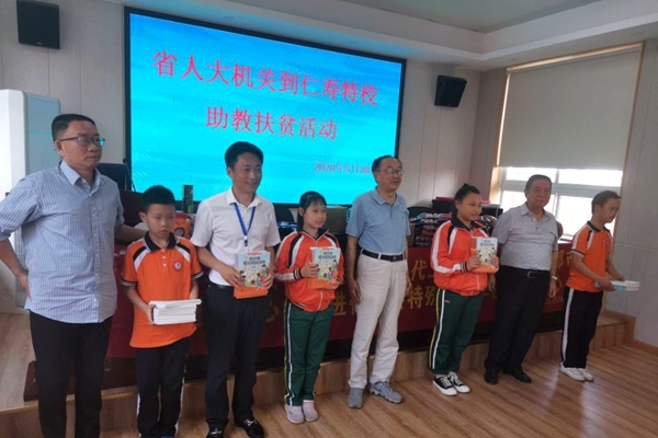 5月28日,四川省人大机关关心下一代工作委员会携手成都市建中爱心社,走进眉山市仁寿县特殊教育学校开展助教扶贫活动,向学校捐赠一批书籍和学习、生活用品。
