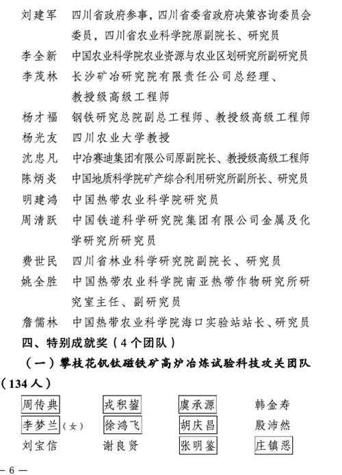 “这支攻关队伍,在历时三年、转辗三地的科技攻关中,始终透着一股坚毅刚强、勇于牺牲的劲头和严谨认真、一丝不苟的科学精神。”5月29日,攀枝花开发建设55周年科技创新大会上,原攀枝花钒钛磁铁矿高炉冶炼试验组成员李身钊走上台,代表获得“特别成就奖”的攀枝花钒钛磁铁矿高炉冶炼试验科技攻关团队成员,发表获奖感言。