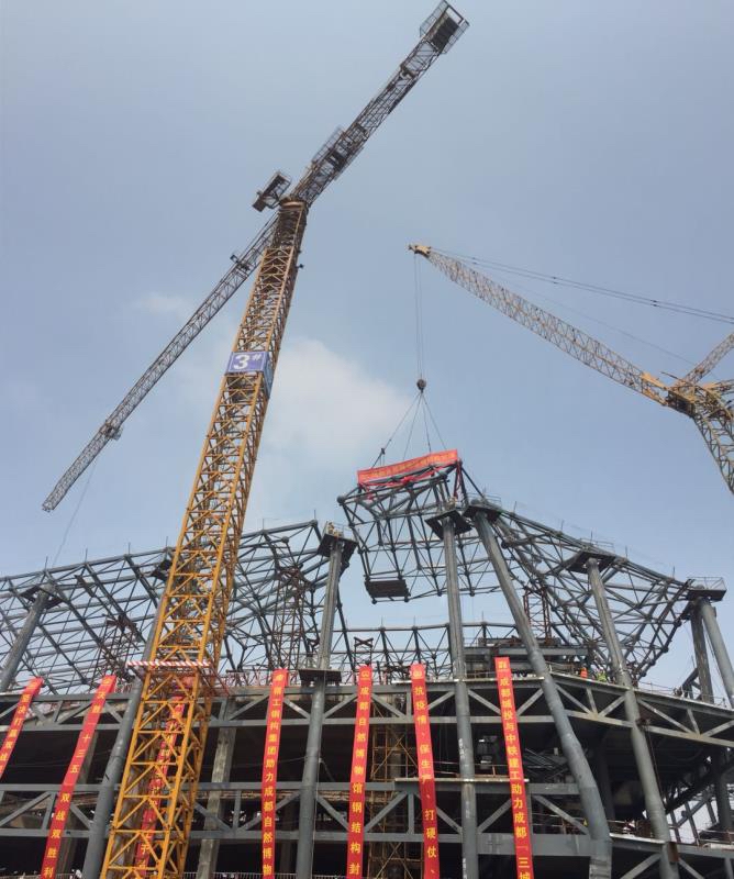 四川在线消息(记者 雷倢)5月31日, 随着最后一片重达30.1吨的屋面网架吊装完成,由成都城投集团作为项目建设业主,中国中铁建工集团承建的成都自然博物馆钢结构工程全面完工,工程进入机电安装和装饰装修阶段。