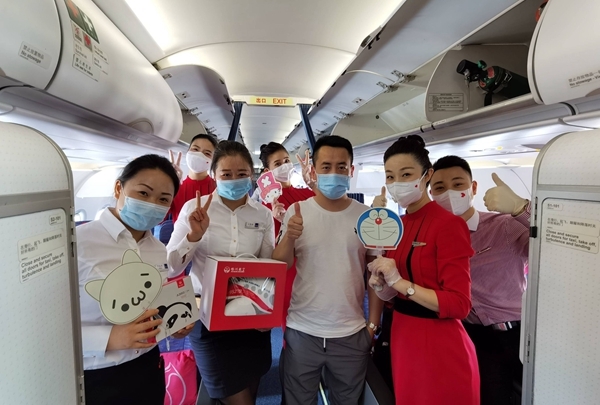 四川在线消息(段艺 记者 王眉灵)6月1日是国际儿童节,在当天的川航3U8623成都-无锡航班上,以“童心·同趣·同行”为主题的活动热闹开展,乘务组为旅客们派发节日糖果、开展互动,开启空中寻梦童趣之旅。当天所有的川航航班都播放了“六一”主题节日广播,为旅客送上真挚问候。
