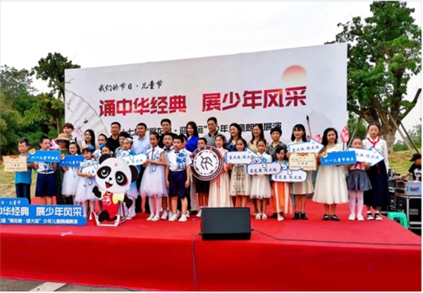 【诵读比赛中,龙泉驿区的少年儿童踊跃参赛。】