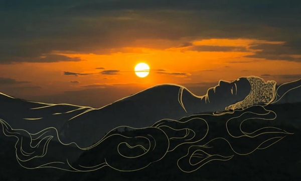 仔细瞧瞧,金色的朝阳下,群峰巅上是不是躺着一个“人”,就是这个家伙第一眼就堪称惊艳!