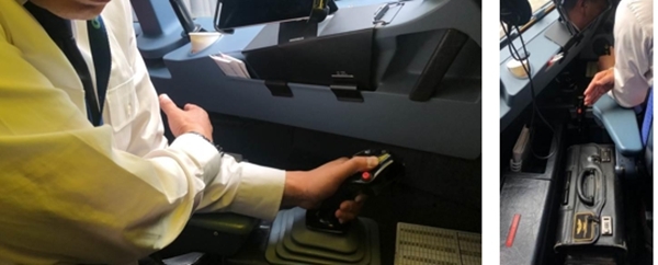 机长位系紧肩带操纵侧杆时取用氧气面罩示意图