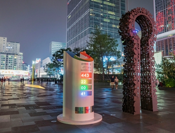 据了解,成都大运会9个倒计时装置分别安放在太古里、天府广场、大运村、东安湖,天府大道、双流机场(T1、T2)、火车南站和火车东站。在太古里,台湾艺术家范姜明道设计的“穿越”雕塑无疑是最耀眼的标识。如今,放置在它旁边的大运会倒计时装置,更给这里加上了时空的定义。