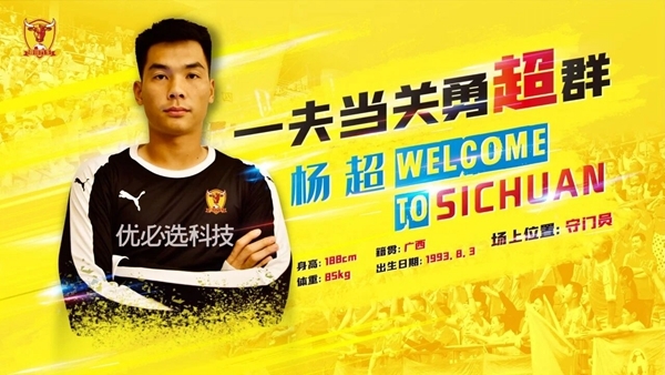 2020赛季中甲新军四川优必选继续着他们快速的引援步伐。6月3日,四川优必选官方微博宣布,他们与前广东华南虎守门员杨超完成了签约,待赛季前转会注册窗口开启正式办理转会注册手续。这也是球队本赛季引进的第五名内援。值得一提的是,根据中国足协的相关规定,杨超不会占用四川优必选本赛季的引援名额。