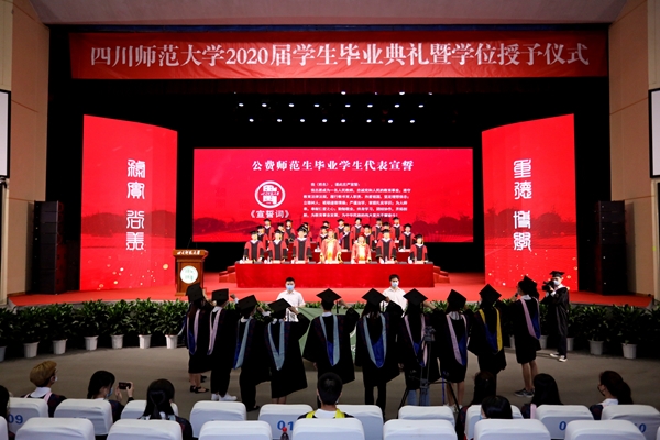作为全省第一所召开“云毕业典礼”的高校,6月3日,四川师范大学校长汪明义向全校毕业生发来了他的祝福。他说:我和母校的每一位老师为此深感遗憾:不能亲手为每一位同学拨穗正冠,不能亲手为每一位同学颁授学位,不能与每一位同学握手道别……