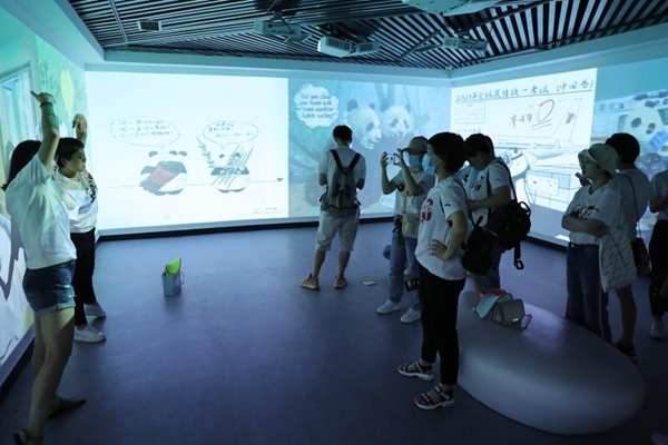 “认亲”活动结束后,医疗队员们来到了熊猫基地国际艺术中心,参观了《我们的约定》战疫主题大熊猫艺术作品展览,该展览为熊猫基地主办的主题展,作品来自13个国家和地区,旨在记录新冠疫情下每一个普通人的真实情绪与感受,其中有2幅作品的作者正是四川援湖北医疗队队员。