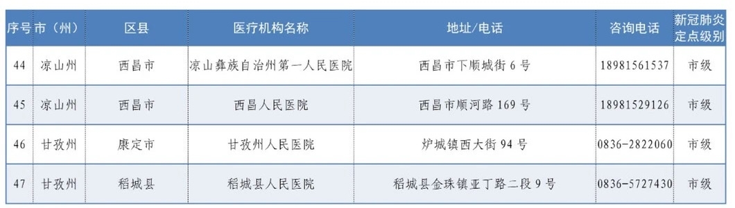 6月5日,记者从省卫健委获悉,按照党中央关于抓紧抓实抓细常态化疫情防控工作的决策部署,为全面落实“外防输入、内防反弹”的总体防控策略,坚持及时发现、快速处置、精准管控、有效救治,全面落实“四早”机制和“四集中一远程”原则,有力保障人民群众生命安全和身体健康,巩固来之不易的防控成果,切实做好新型冠状病毒感染肺炎患者集中救治工作,目前确定四川大学华西医院、四川省人民医院等47家医院为我省常态化疫情防控下新冠肺炎救治定点医院,其中省级定点医院5家,市级定点医院42家。