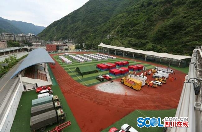 在宝兴县城新中学操场,现场指挥方舱一共分为了两个部分:决策区和保障区。其中,决策区分为指挥中心、救援中心、综合办公中心、通讯控制中心等区域。“每个区域的方舱我们都贴上了相关的标识以示区分,从而快速投入使用。”现场指挥部相关负责人对记者说。